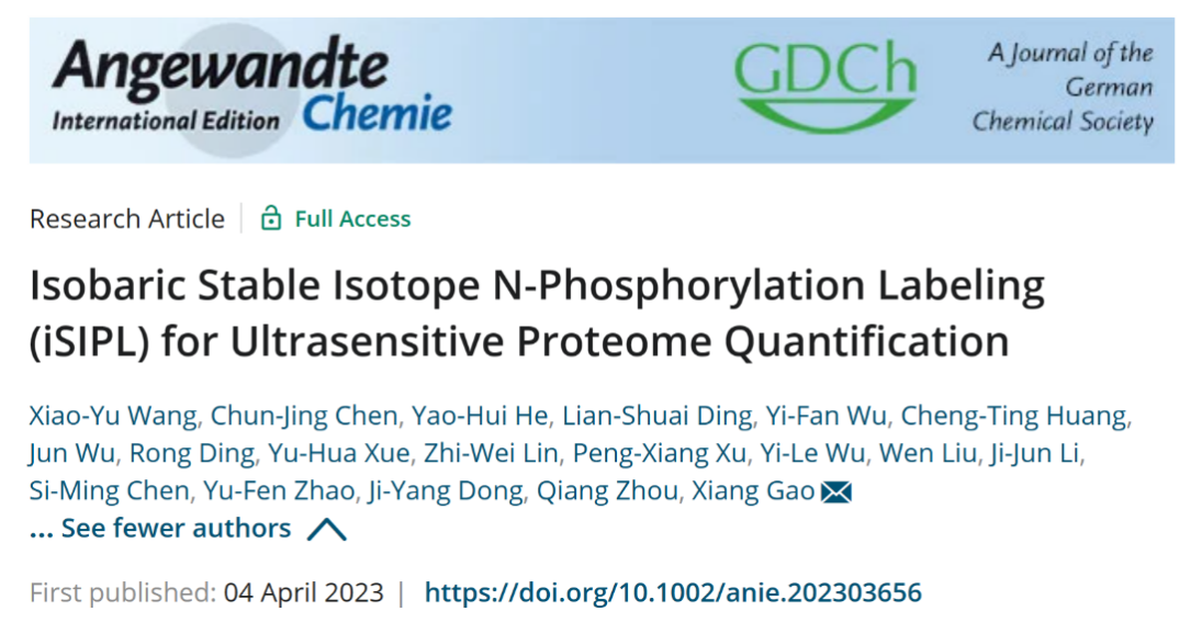 福建省药物新靶点研究重点实验室高祥副教授团队与合作者在高灵敏度蛋白质定性和定量分析技术方面取得重要进展,相关成果以“Isobaric Stable Isotope N-Phosphorylation Labeling (iSIPL) for Ultrasensitive Proteome Quantification”为题在线发表在Angew Chemie International Edition杂志(DOI:10.1002/anie.202303656)。