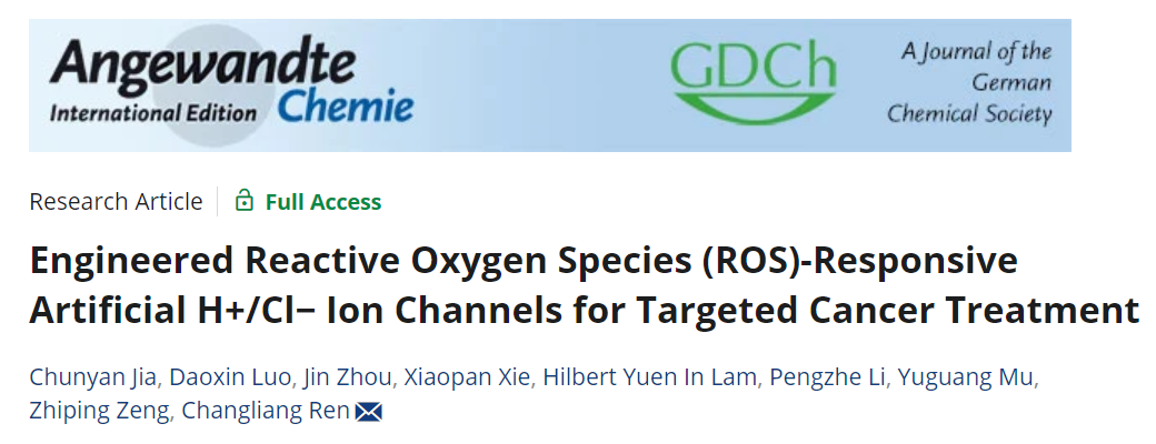 Angewandte Chemie-International Edition|任长亮教授团队在活性氧响应型H+/Cl-通道构建及抗癌应用取得重要突破
