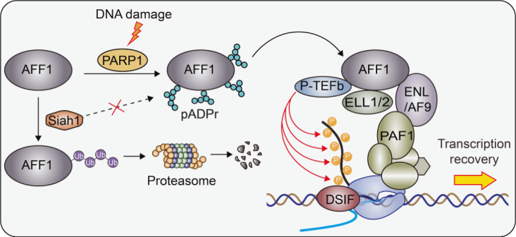 PARP1-AFF1信号轴通过PARSTA机制介导DNA损伤后的转录重启